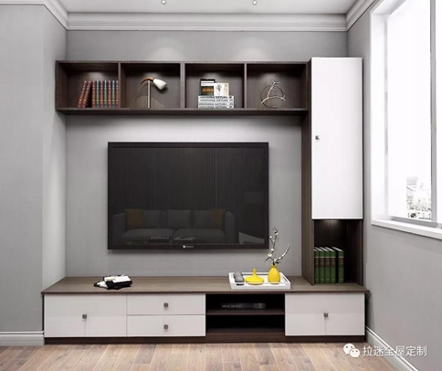 我們可以根據空間的大小來選擇不同的組合方式。如果房間寬敞,就可以采用占據整面墻的電視柜以突出整體感;如果空間過于狹長,建議采用"山"字形或"品"字形的組合電視柜,這樣可以讓空間錯落有致,弱化狹長空間帶來的局促感。