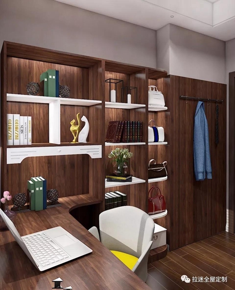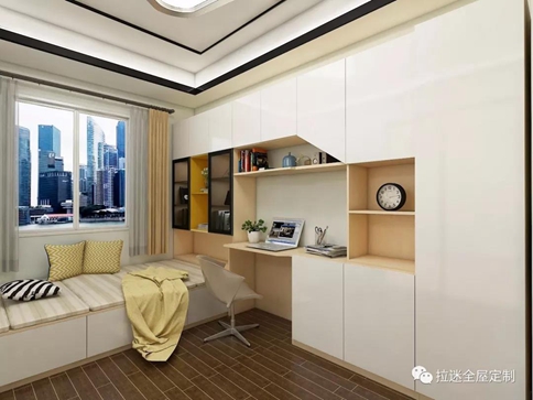 對于小戶型而言,在有限的面積內(nèi)實現(xiàn)自己想要的一些功能是需要花更多心思的。比如寫字臺的設計,可以集書桌、書柜、衣柜、展示柜等等功能于一體,相當于節(jié)省了不少空間。