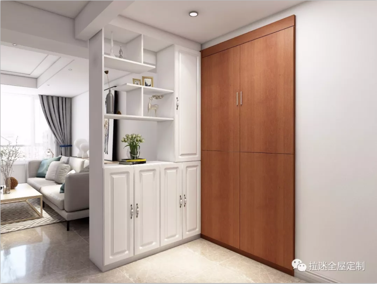 而玄關(guān)作為入戶第一眼看到的空間,決定著我們進(jìn)入門后的情緒感受,所以玄關(guān)隔斷的顏色需配合整體配色。