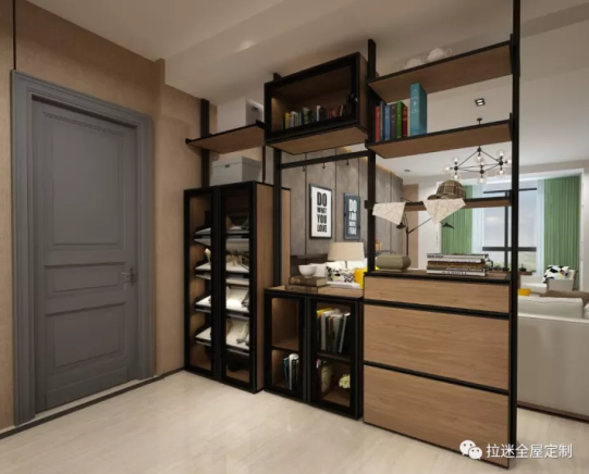 功能性隔斷簡(jiǎn)單來說就是讓隔斷與收納組cp,實(shí)現(xiàn)一物多用,不浪費(fèi)任何空間。