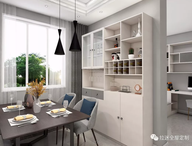 需要注意的是,隔斷本身也是客餐廳的視覺焦點(diǎn),設(shè)計(jì)的時(shí)候要防止過高,以免影響視線并感到壓抑~