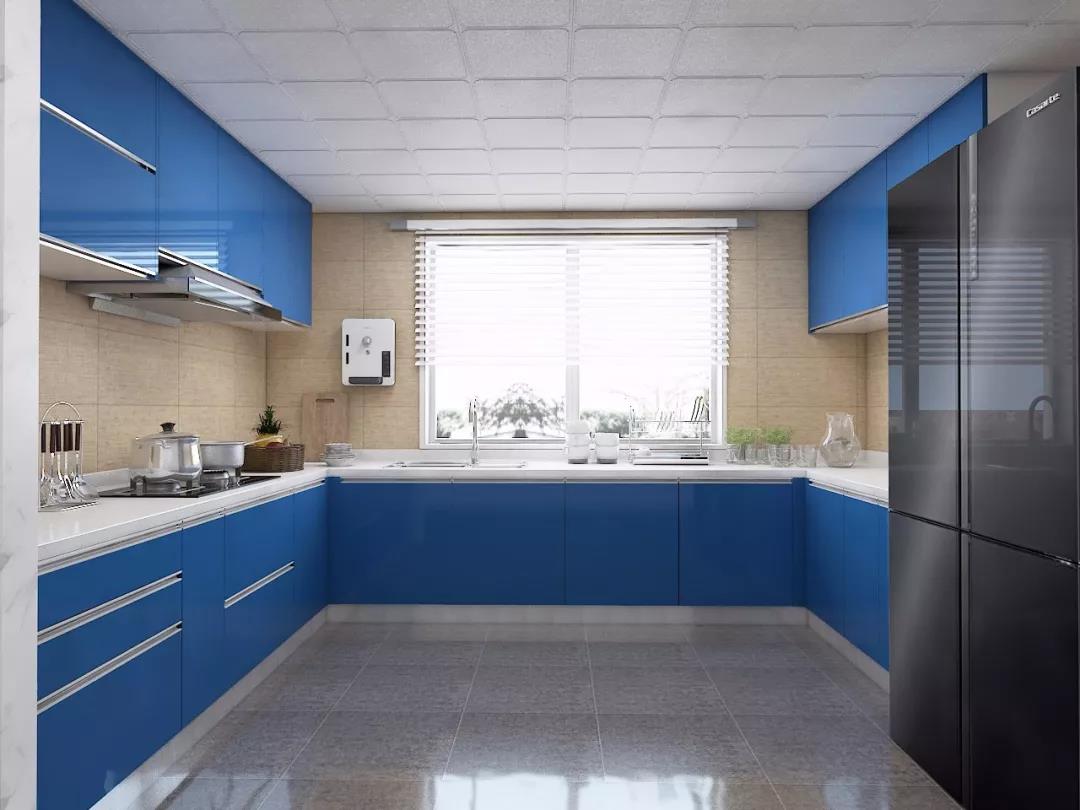 除了灰色和白色,其他色系的櫥柜也很受歡迎,比如在夏日帶來清涼感覺的藍色,舒適溫馨的淡黃色,清新自然的胡桃木色。可以用簡約的軟裝裝飾效果,呈現(xiàn)出一個個時尚廚房。