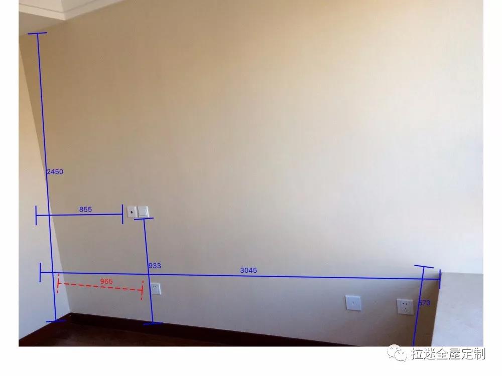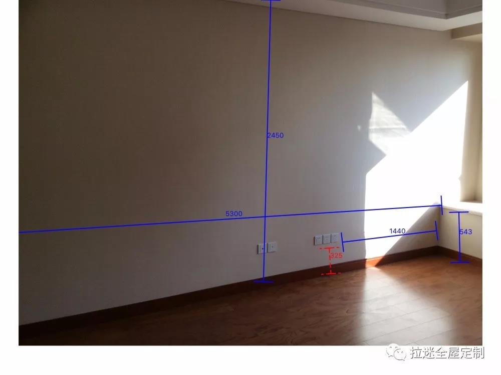 可以看到,拉迷派出設計師進行上門量尺時,整個房間還是空蕩蕩的。設計師對房間的空間大小進行一個細致的測量,這一點決定未來家具安裝的實際效果。