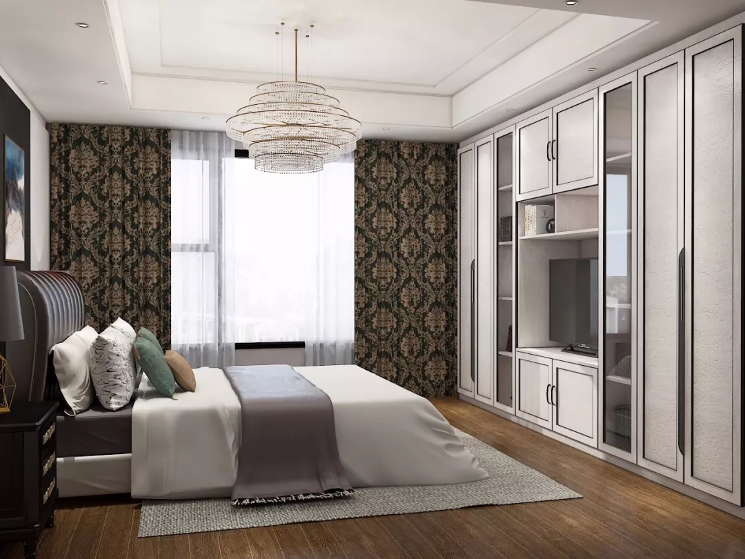 同樣,定制衣柜還可以搭配電視柜。從衣柜側面延伸出吊柜和地柜,再擺一臺電視機。不僅讓臥室在視覺更加靈巧鮮活,同時也開啟了賴床刷劇的幸福生活!