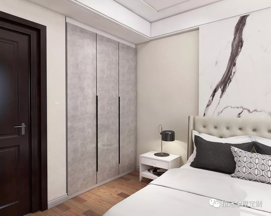 嵌入式衣柜,將衣柜嵌入設計在墻中,減少居室占地,擴大家居生活空間,與墻體為一個整體平面,和諧美觀。