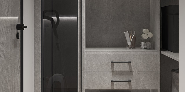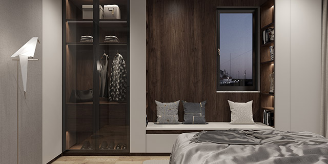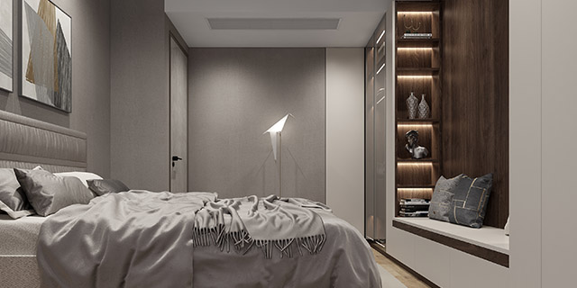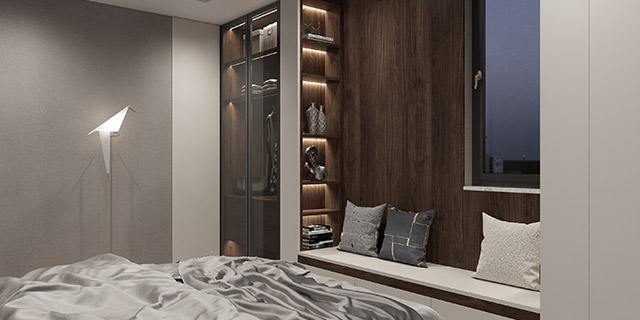 莫爾德與沙漠灰的質感提升了整個飄窗柜高級感。