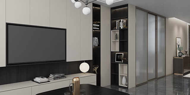 柜體局部留空提升了整體的裝飾效果,