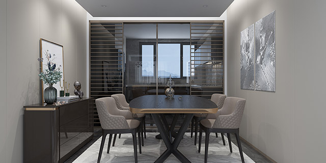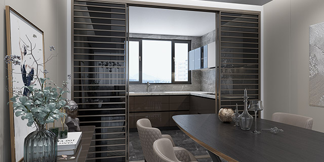 餐廳用窄邊框中空門隔開,