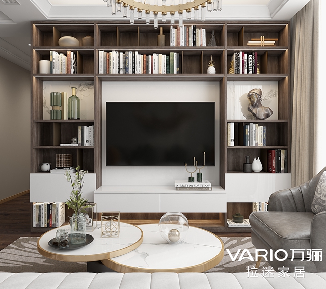 定制電視柜提升收納能力的同時(shí),裝飾效果也非常不錯(cuò)