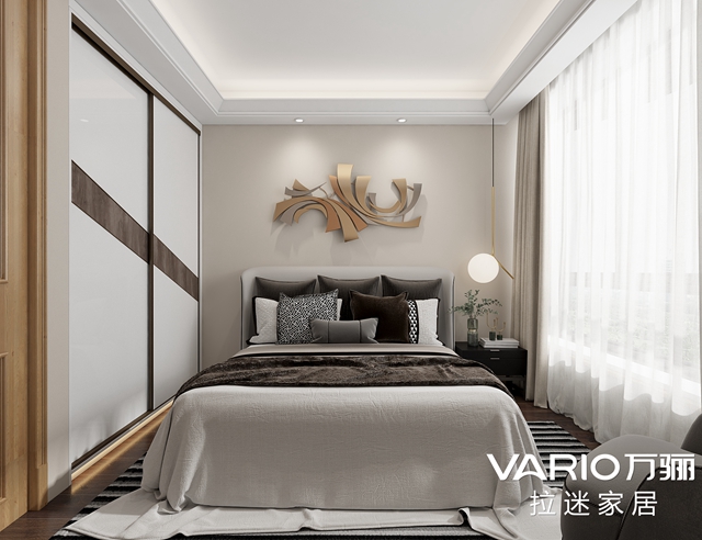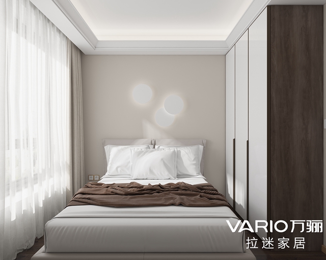 一盞創(chuàng)意壁燈、一個(gè)簡(jiǎn)潔的大衣柜讓空間充滿“隨意感”
