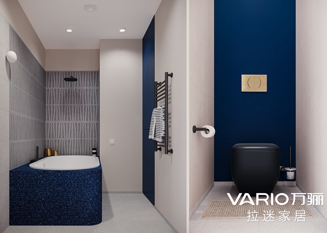 衛(wèi)浴內(nèi)裝修簡潔、干凈,浴缸的設(shè)計自帶高級感,洗漱臺的設(shè)計也別有洞天,