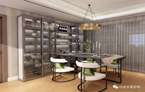 餐邊柜在設(shè)計(jì)時(shí)將酒柜結(jié)合其中,既滿足了餐邊柜的儲(chǔ)物功能,也滿足了酒柜的展示功能。而穿插酒柜的設(shè)計(jì)更是將主人毫無張揚(yáng)之態(tài),又不失自信之姿的品質(zhì)表達(dá)的淋漓盡致。